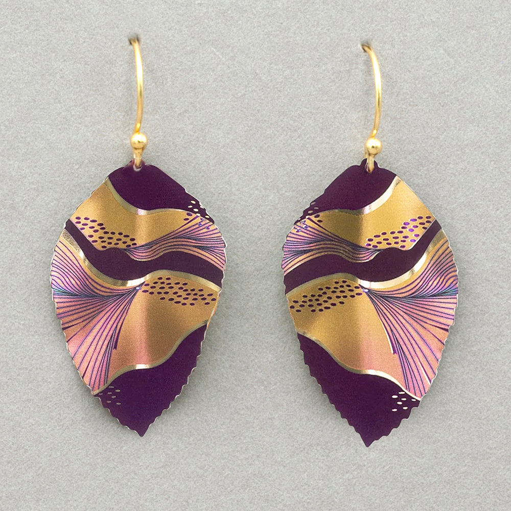 Eccentric Elm Earrings transform niobium into a bold, flowing design. Each handcrafted leaf is a vibrant take on foliage that never fades Niobium, 18K gold-plated. Measures: 1 1/4” W x 1 5/8” L. hy 10041607md