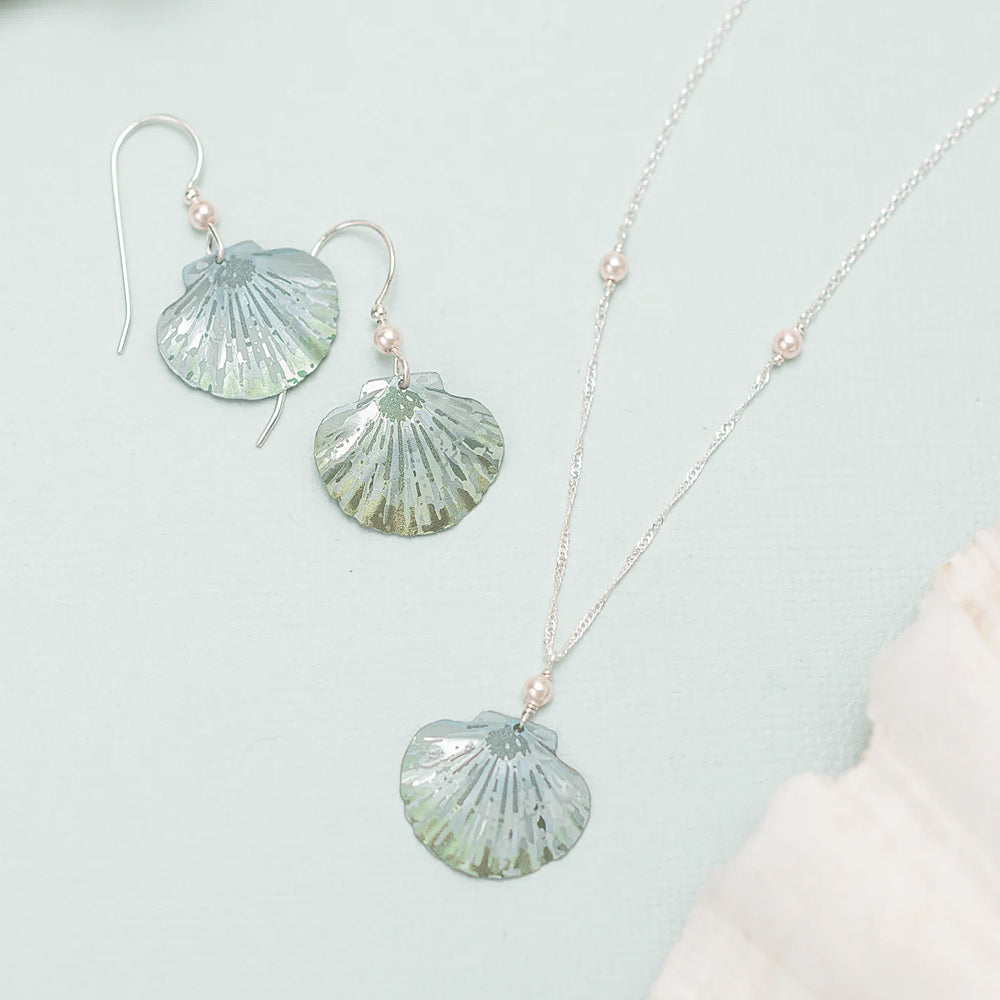 The Shelby Pendant Necklace keeps the sea close to your heart. Anchored by a glimmering niobium shell and sparkling with Austrian crystals, it tells a sweet and simple story of your oceanic affection. Measures: Chain adjustable up to 20"; Pendant 1" l. × 3/4" w.
