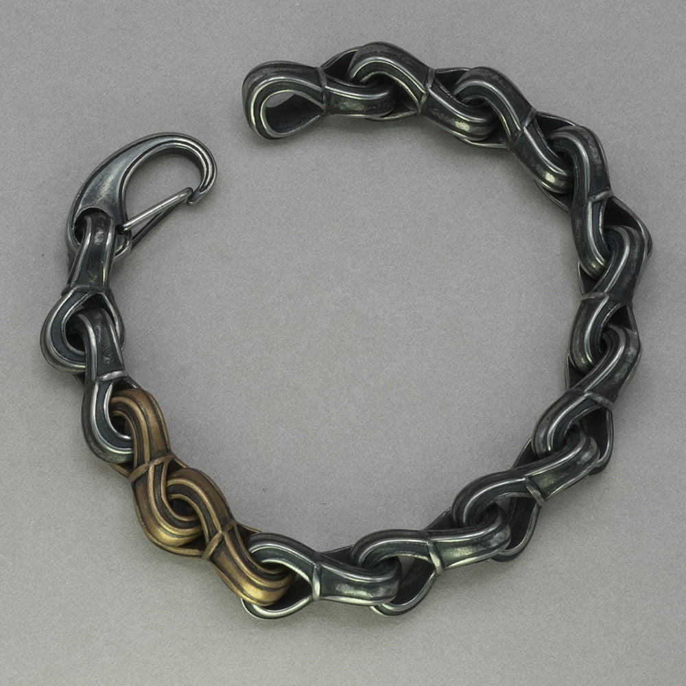 Gun and gold IP stainless steel twisted link bracelet. Measures about 8.5" long. ital smb 294