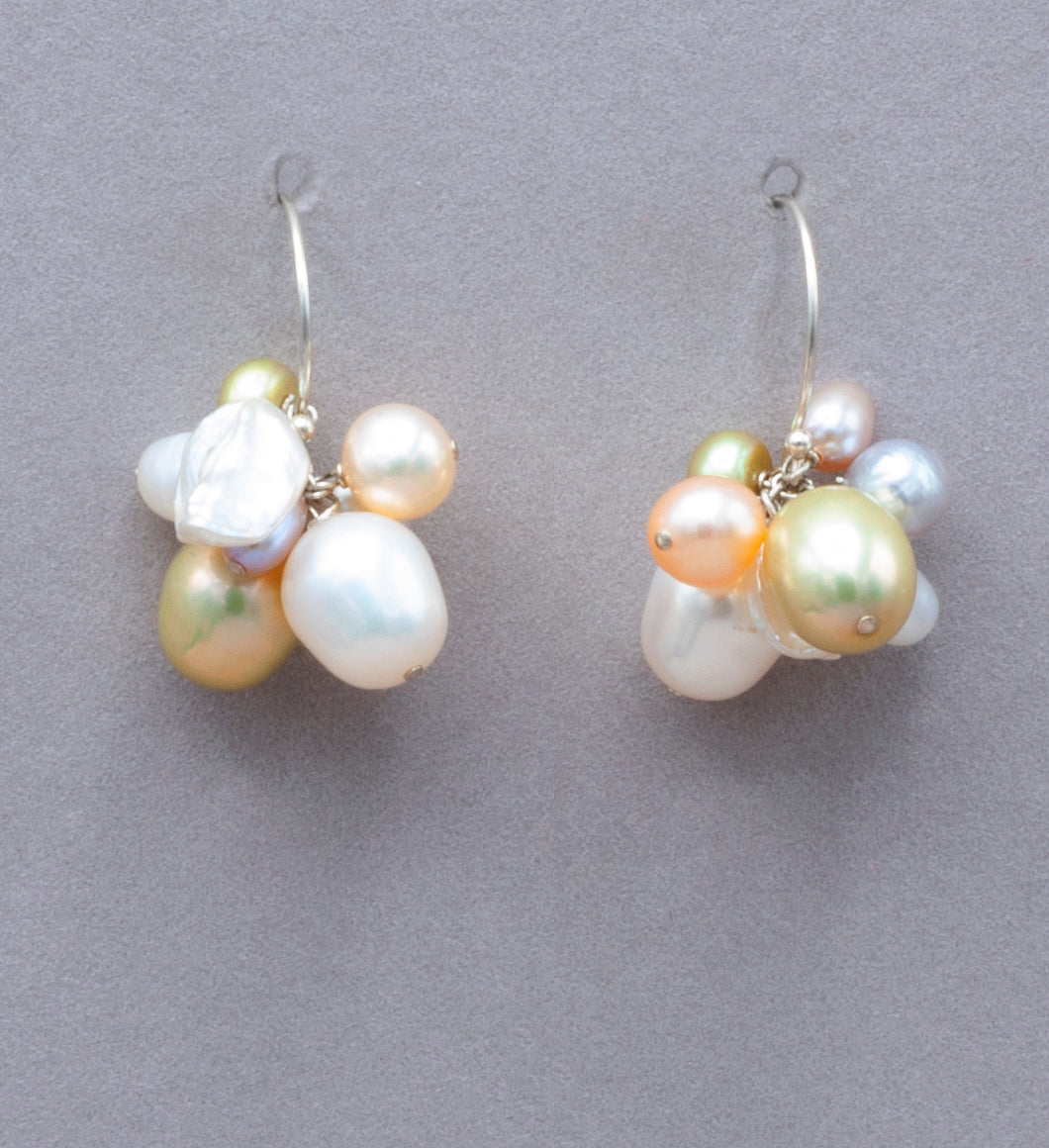 Pastel Freshwater Pearl Cluster Earrings Sterling Silver