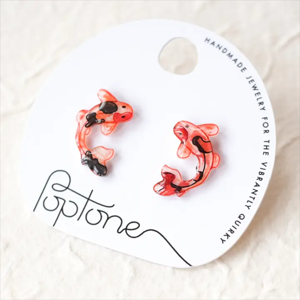 Each earring is handmade and hand-illustrated, ensuring that no two are exactly alike. The earrings are coated in glossy resin and made with super hypoallergenic nickel-free titanium earring posts. pop 307