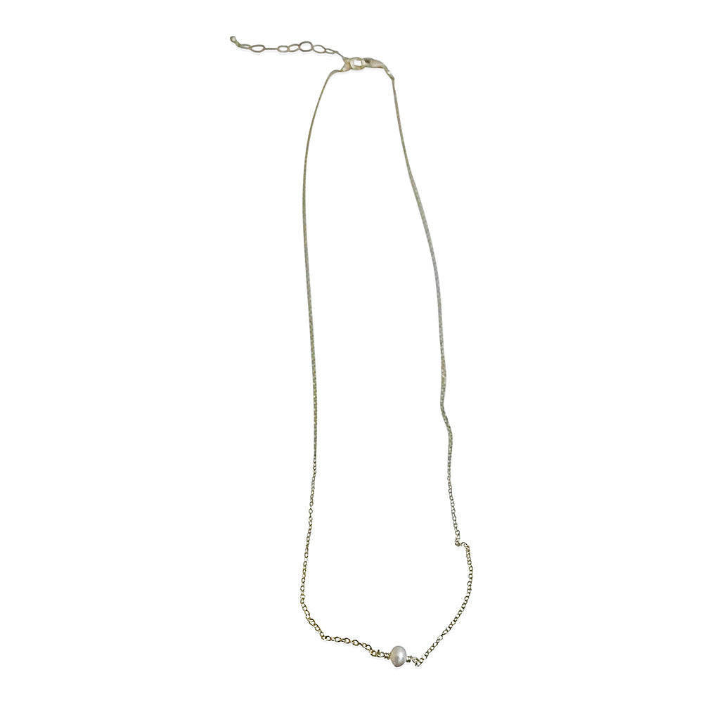 High luster tiny freshwater pearls with a super cute tiny button-shape, hand selected by the artisan, wrapped onto delicate sterling silver cable chain. Lobster-style clasp. Perfect go to style. Great for layering with longer necklaces Measures adjustable 16-18" long chain. de nk0144