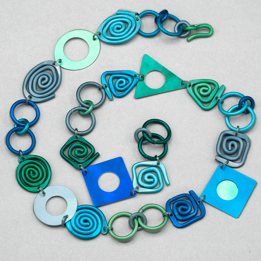 Anodized aluminum necklace. Measures about 26" long. sh gmnp3