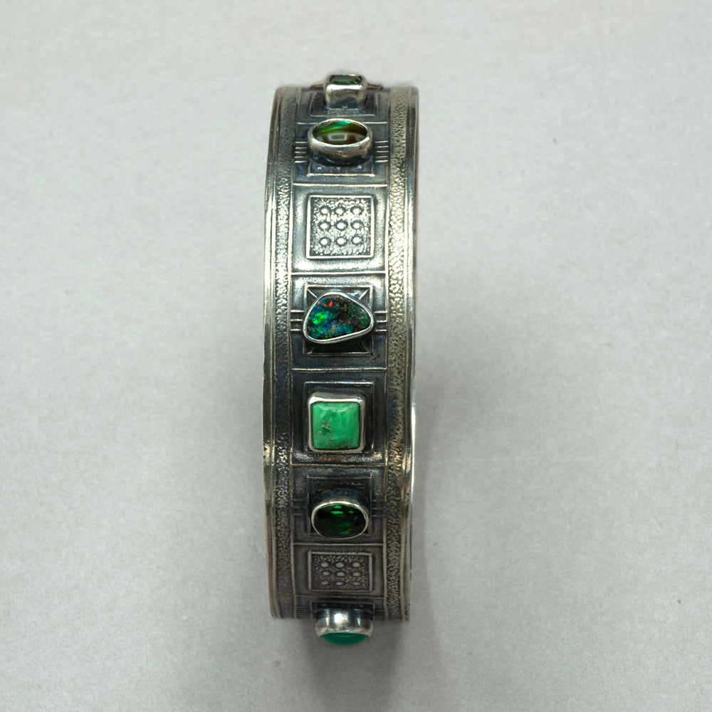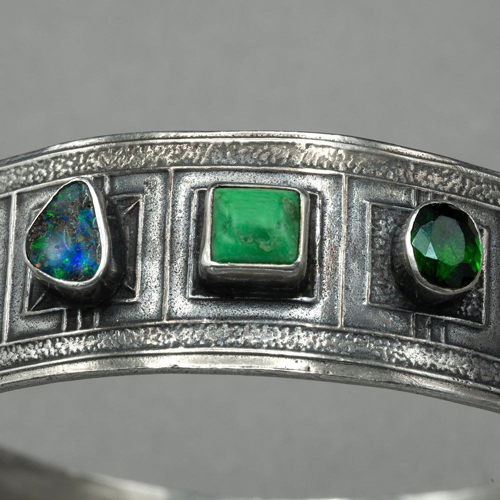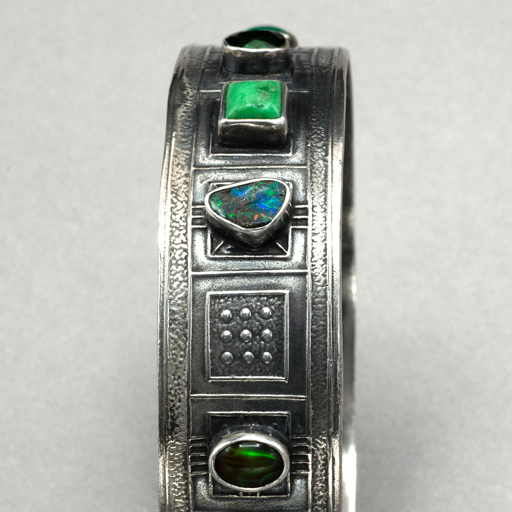 Tabra Boulder Opal and Tourmaline Sterling Silver Bangle