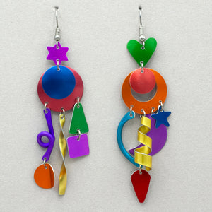Since 1981, Sylvi Harwin has anodized and handcrafted an ever-changing line of colorful, whimsical aluminum jewelry, accessories, mobiles and convertible mobiles and tableware. Her work is represented in museum shops and galleries nationwide, and abroad. She specializes in asymmetric jewelry for the fun at heart!