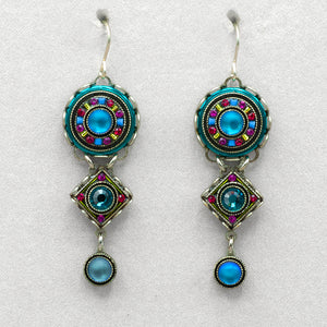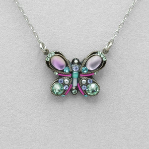 This intricately embellished mosaic necklace is comprised of European glass crystals and various other materials. Adjustable silver plated chain measures: 15 3/4" to 18". ff 9209