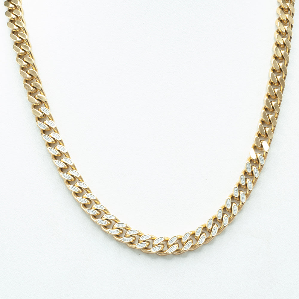 Elevate your style with our 9.4mm curb-link white cz chain necklace. Made from durable stainless steel, this elegant chain boasts sparkling white CZ stones for a touch of glamour. Add sophistication to any outfit and be the envy of your friends. Perfect for any occasion. Adjustable 22" or 24". ital syn62