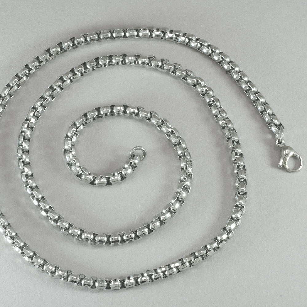Stainless steel D-cut round box-link 24" chain. Made in Italy. Measures 24" L x 3/8" W. ital sn12