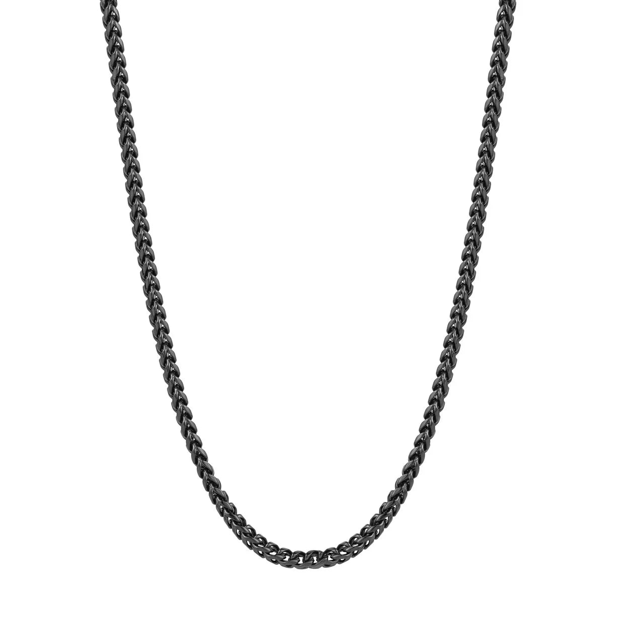 Matte black ion-plated stainless steel 3.5mm round franco chain. Measures 22" long. ital sbn24