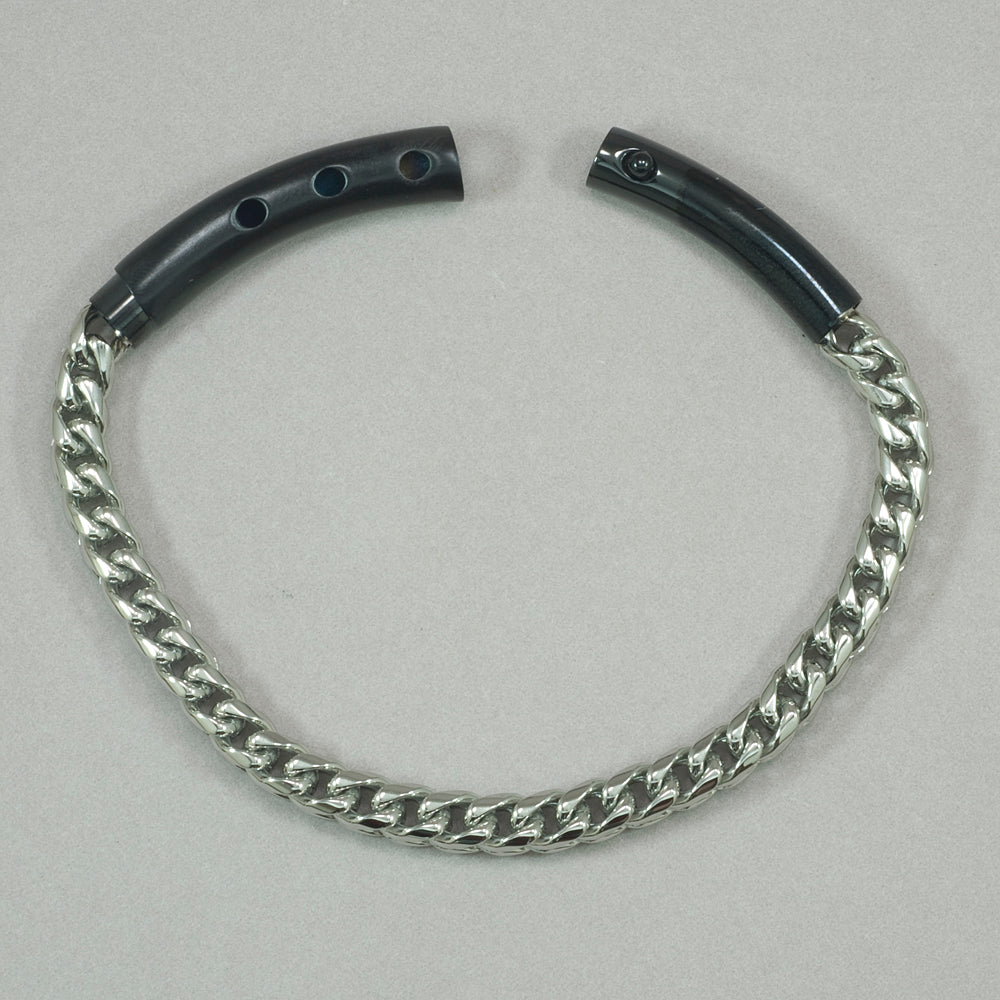 Black iron-plated stainless steel matte clasp and 6mm franco chain bracelet. Measures an adjustable 8-8 3/4" around. ital smb 177