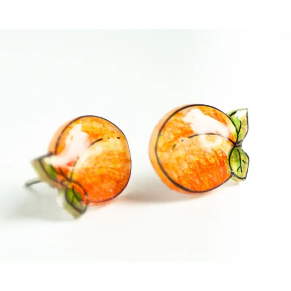 Each earring is handmade and hand-illustrated, ensuring that no two are exactly alike. The earrings are coated in glossy resin and made with super hypoallergenic nickel-free titanium earring posts. pop 104