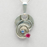 Jim Kelly Tanzanite and Lab Ruby Swirl Silver Pendant