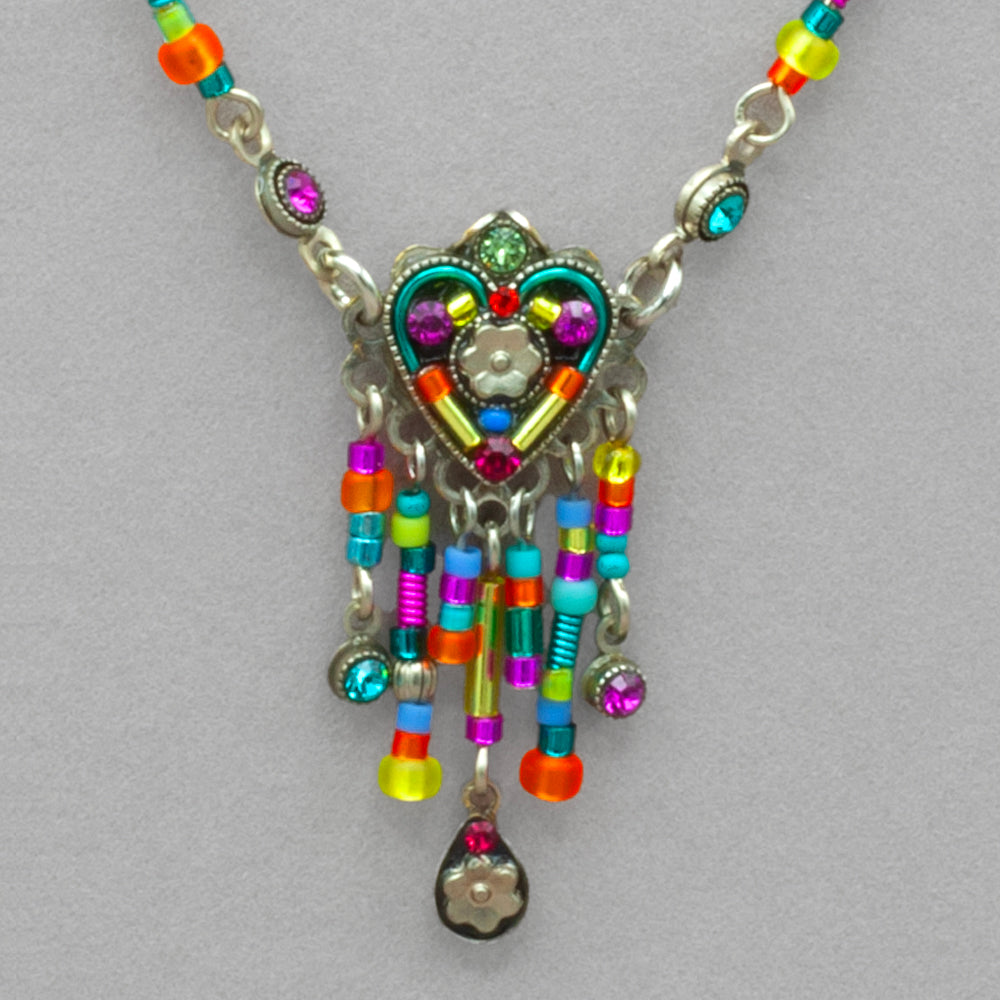 Firefly Hearts and Flowers Waterfall Necklace- Multicolor