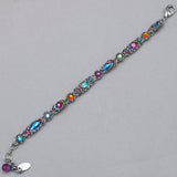 This colorful bracelet comprises European crystals and various other materials in an intricate mosaic design. Lobster clasp. Bracelet is adjustable, from 7" to 7 5/8" long, by 1/4" wide. ff 3139