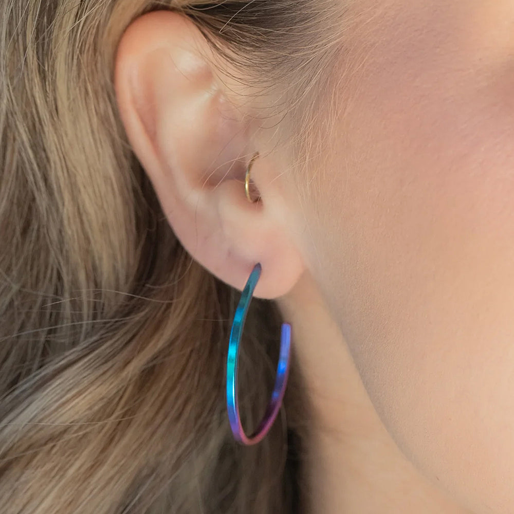 Unusual hoops, the Cyndi earrings put a colorful spin on a classic design. Great for everyday. Measures:1 1/4” dia. hy 10038219sm