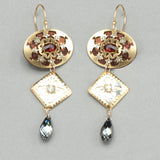 The Eugenie Earrings will steal your heart with filigree and finery wrapped around an oval centered by a crystal bursting with color. A swinging diamond detailed with artful allure dangles beneath, followed by a crystal drop that flutters just so. All handcrafted, of course. And all inspired by memories of regal splendor. Silver-plated, 18K Gold-plated, Crystal, Niobium, Sterling silver ear wires. Measures: 2.5" l. × 1" w.
