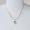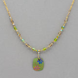 Delicate beads enhance a square pendant of hand colored niobium. Niobium and Bohemian glass. Gold overlay chain. Adjustable, 18" - 20" long.