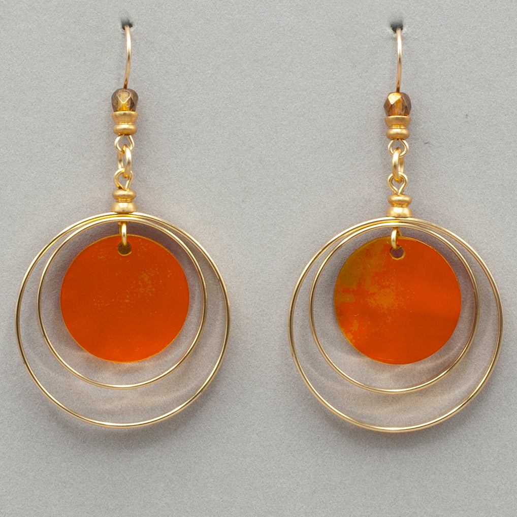 Gold or silver toned plated metal with an anti-tarnish coating, with abalone and glass bead accents. Hypo-allergenic ear wires. Measures 2 5/16" long. jmr 2758