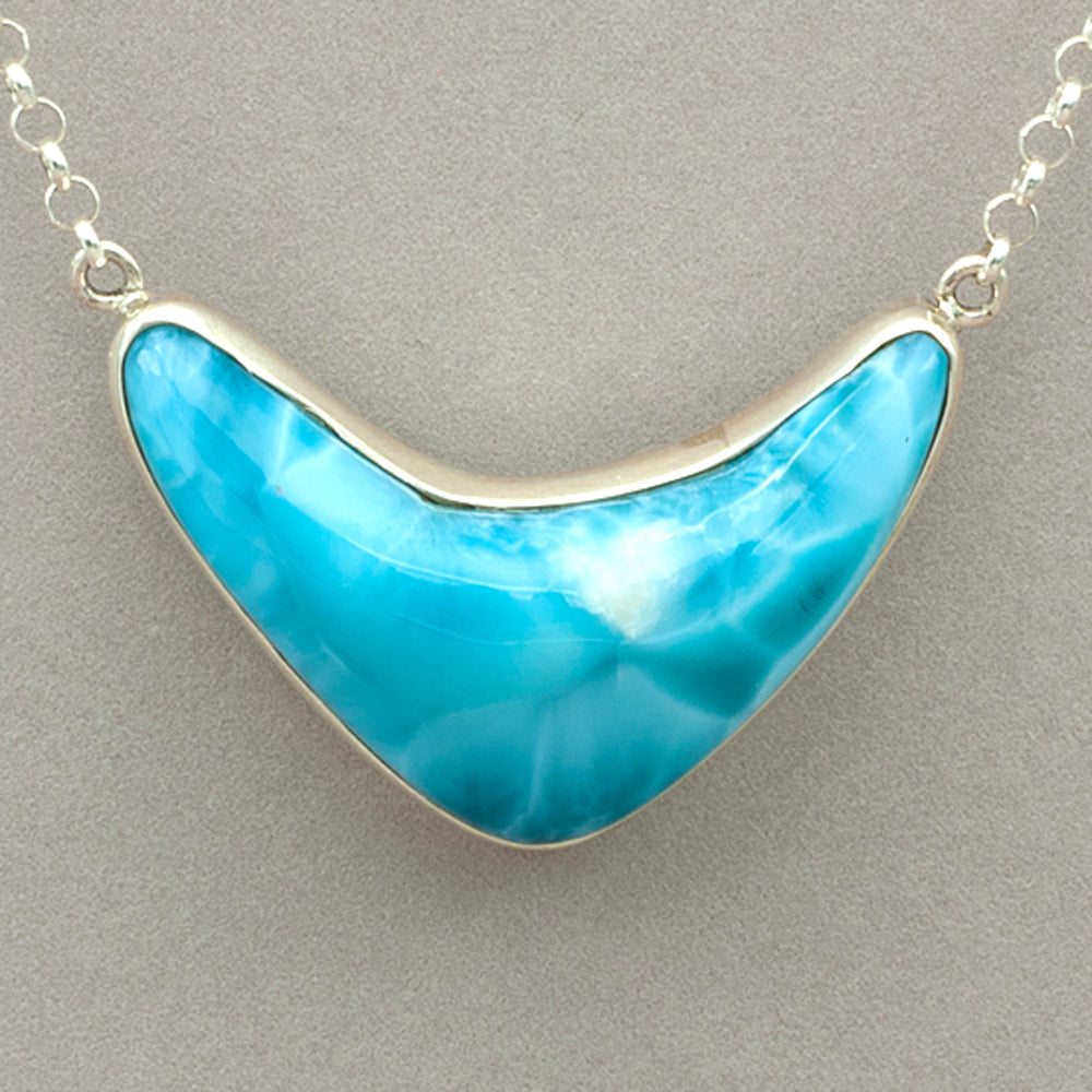 Large Larimar Boomerang Sterling Silver Necklace