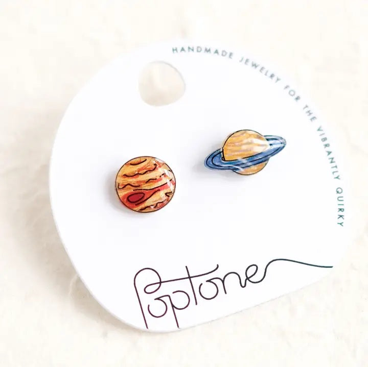 Poptone Saturn and Jupiter Mismatched Stud Earrings