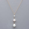Beautiful baroque pearls, accented with spherical and tiny freshwater pearls, hand-wrapped onto delicate 14 karat gold fill cable chain. Lobster-style clasp. Perfect go to style. Measures 16" long chain, with 2 1/4" pearl tier drop, and a 4" extender. de nk0152